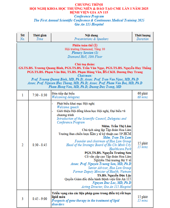 Cập nhật: Chương trình Hội nghị khoa học thường niên & đào tạo CME lần I năm 2025 Bệnh viện Gia An 115